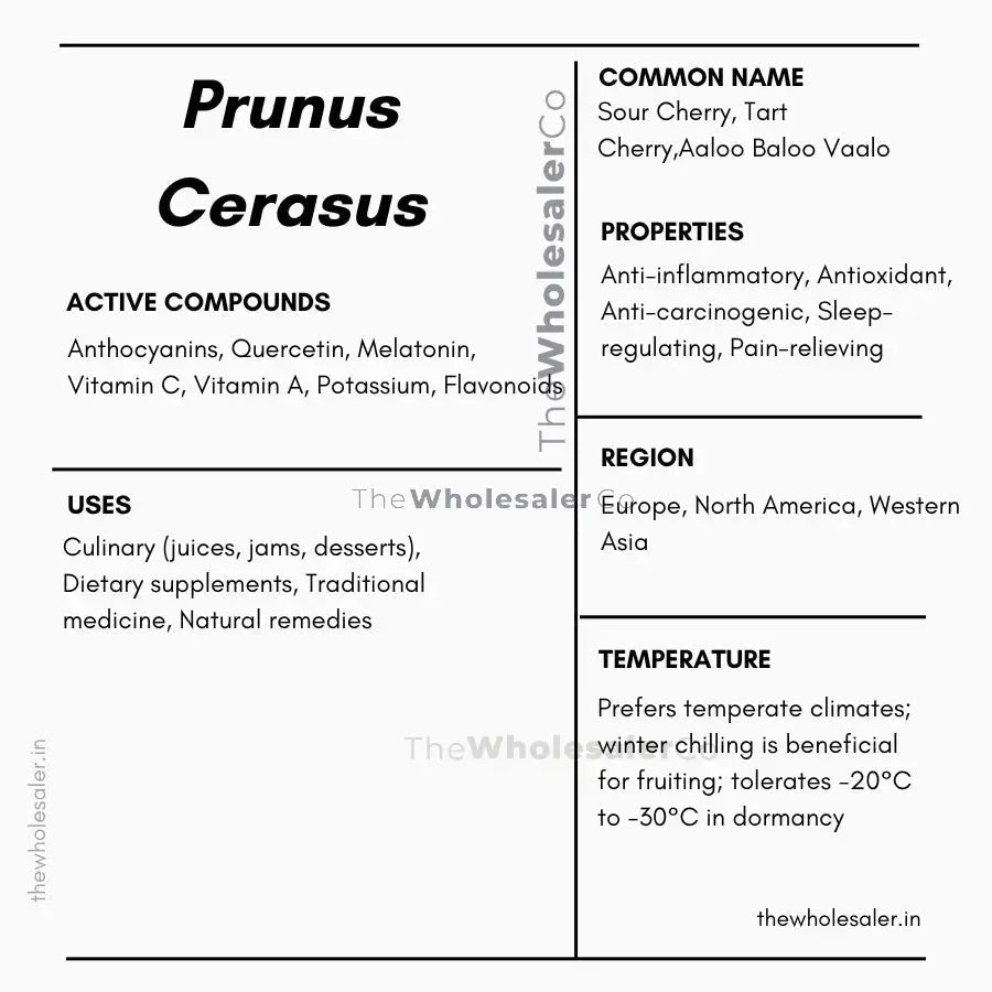 Kaufen Sie bei ThesalerCo online Aaloo Baloo Vaalo, Sauerkirsche, Prunus Cerasus bei Verkauf oder Schüttgut Preise (500 g, 1 kg) und lassen Sie es sich nach Hause liefern.
