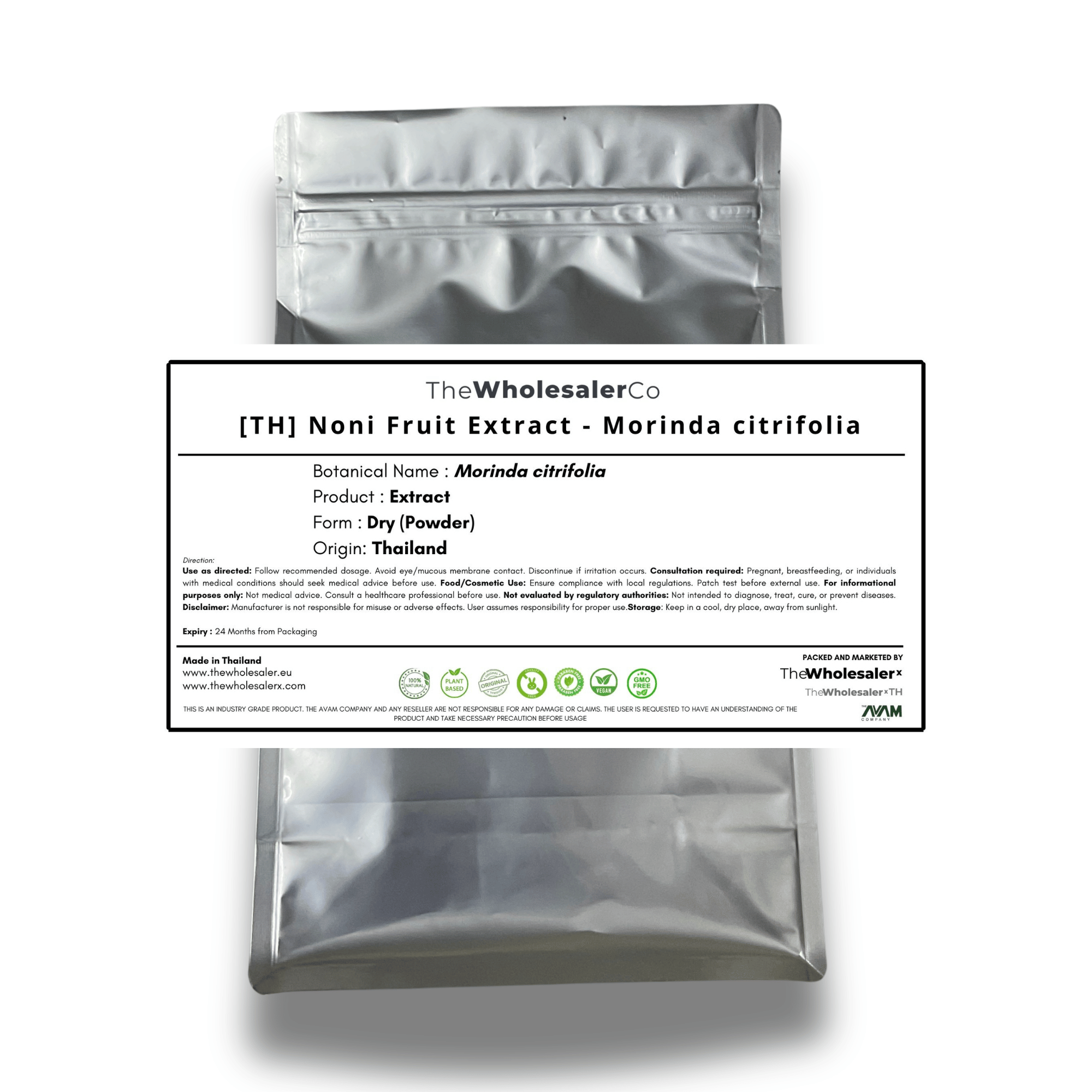 Noni Fruit Extract (Morinda citrifolia) is offered as a Extract Powder with documented Thailand origin. A Thailand-origin standardized botanical extract supplied as a powder for nutraceutical, food, beverage, and cosmetic R&D/manufacturing (application depends on your regulatory scope).
